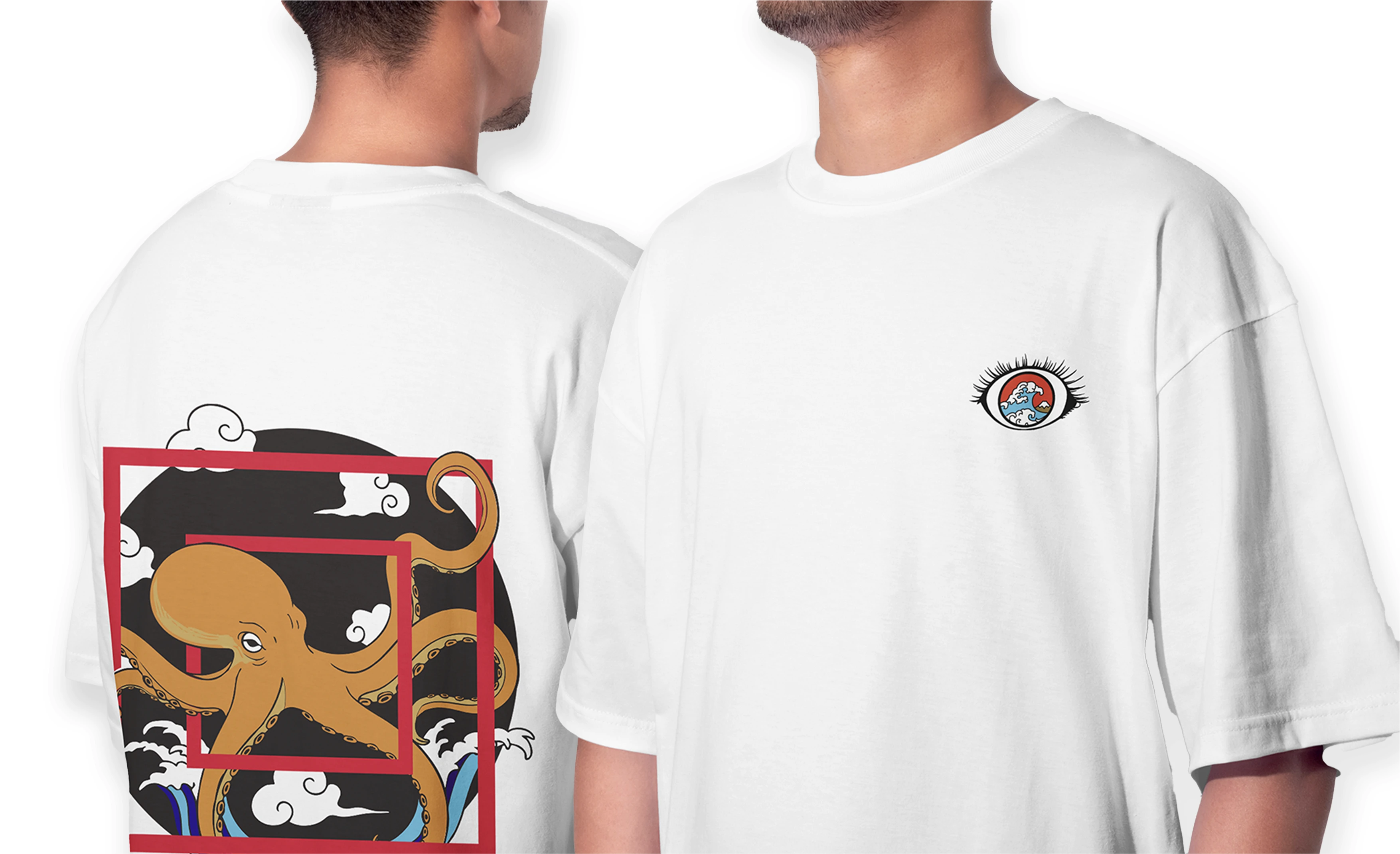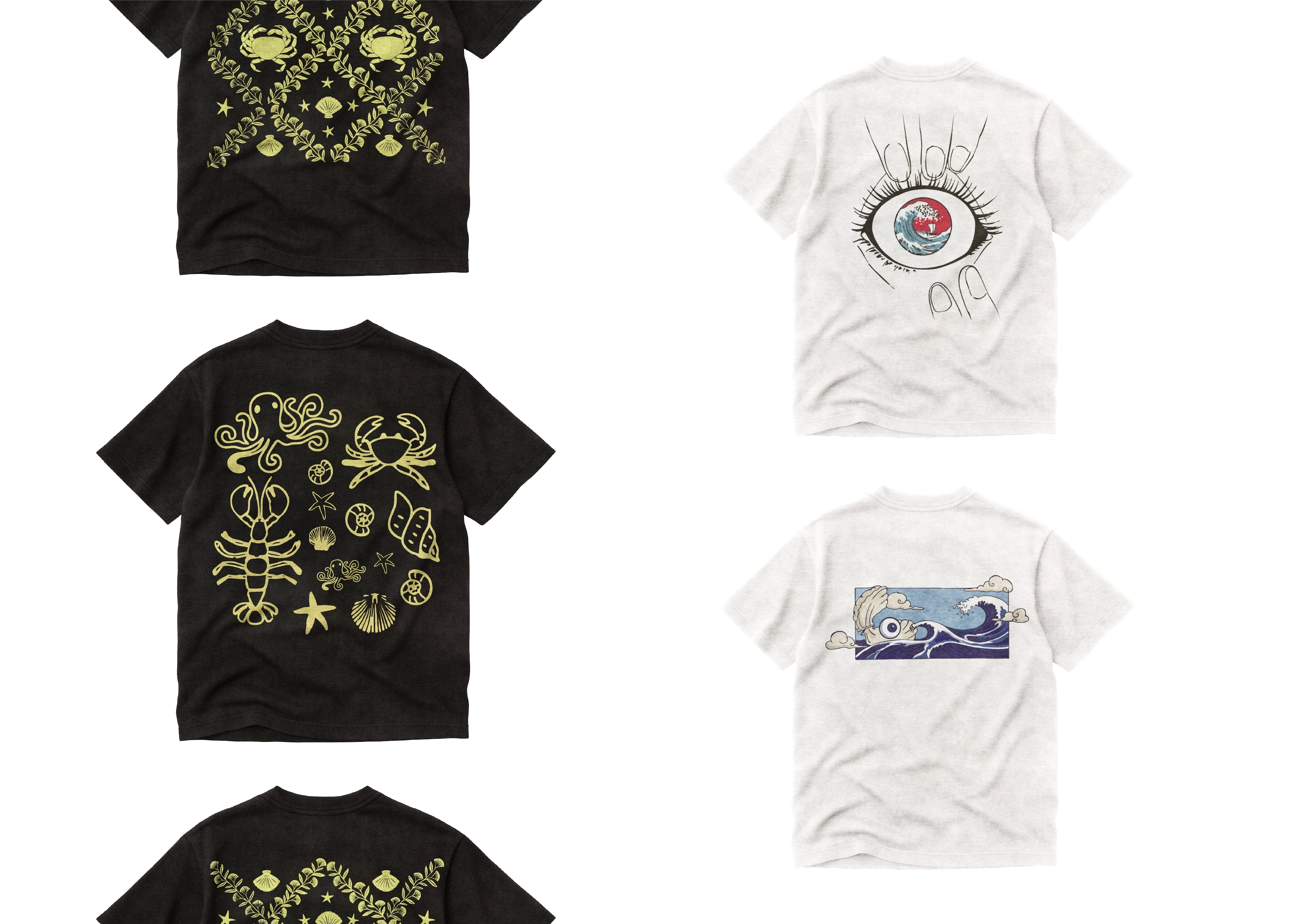 Instead of choosing one, we merged them into an ocean-life dreamscape: swirling waves, clouds, tentacles, koi, and stormy horizons.